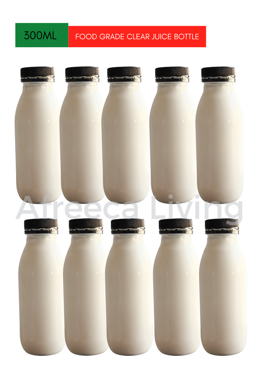 Empty Clear Plastic Juice Bottles Food Grade Drinking Reusable Pet Bottle Recyclable Drink Bulk Containers Leak-Proof Lids for Juice, Water, Milk & Beverages / Black Lid - Pack of 10 X 300ml By Packware in Kitchen & Dining